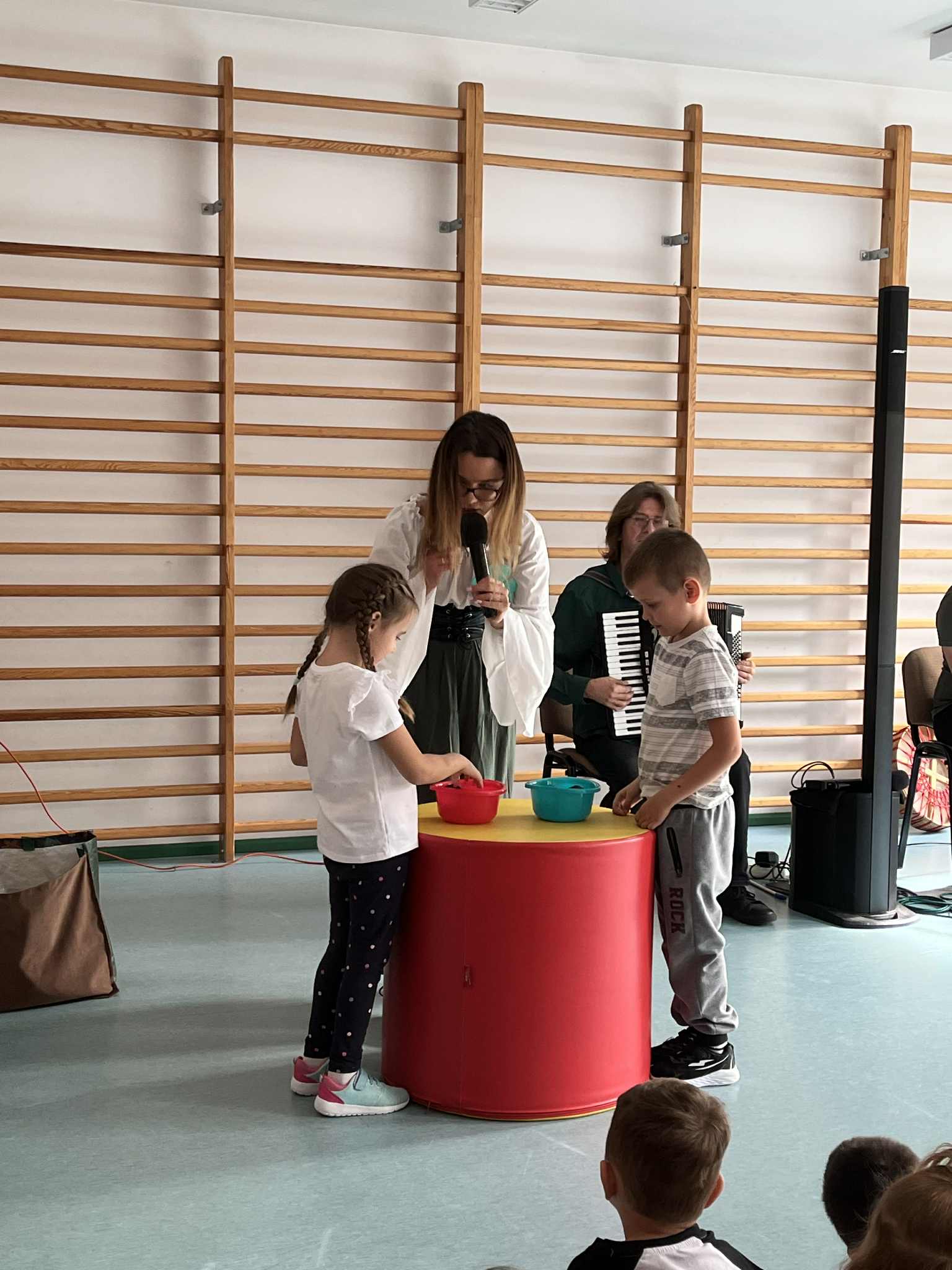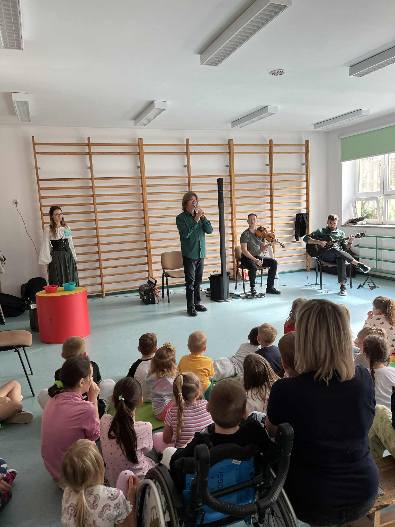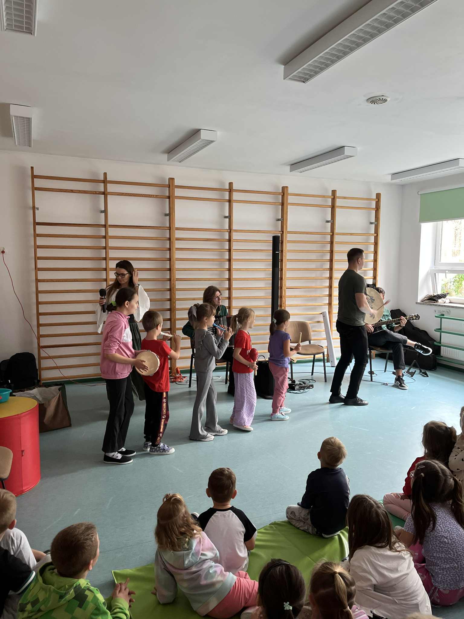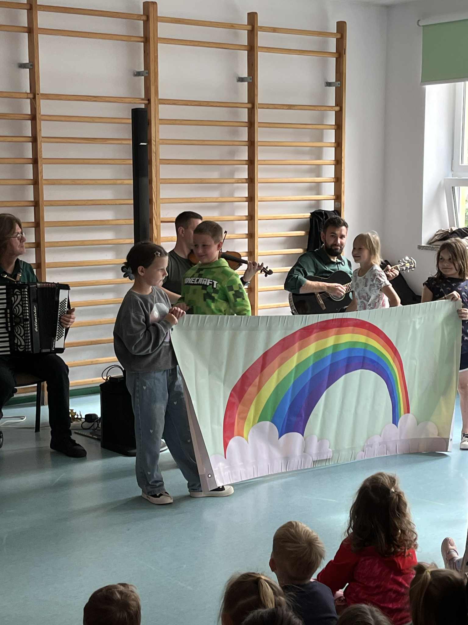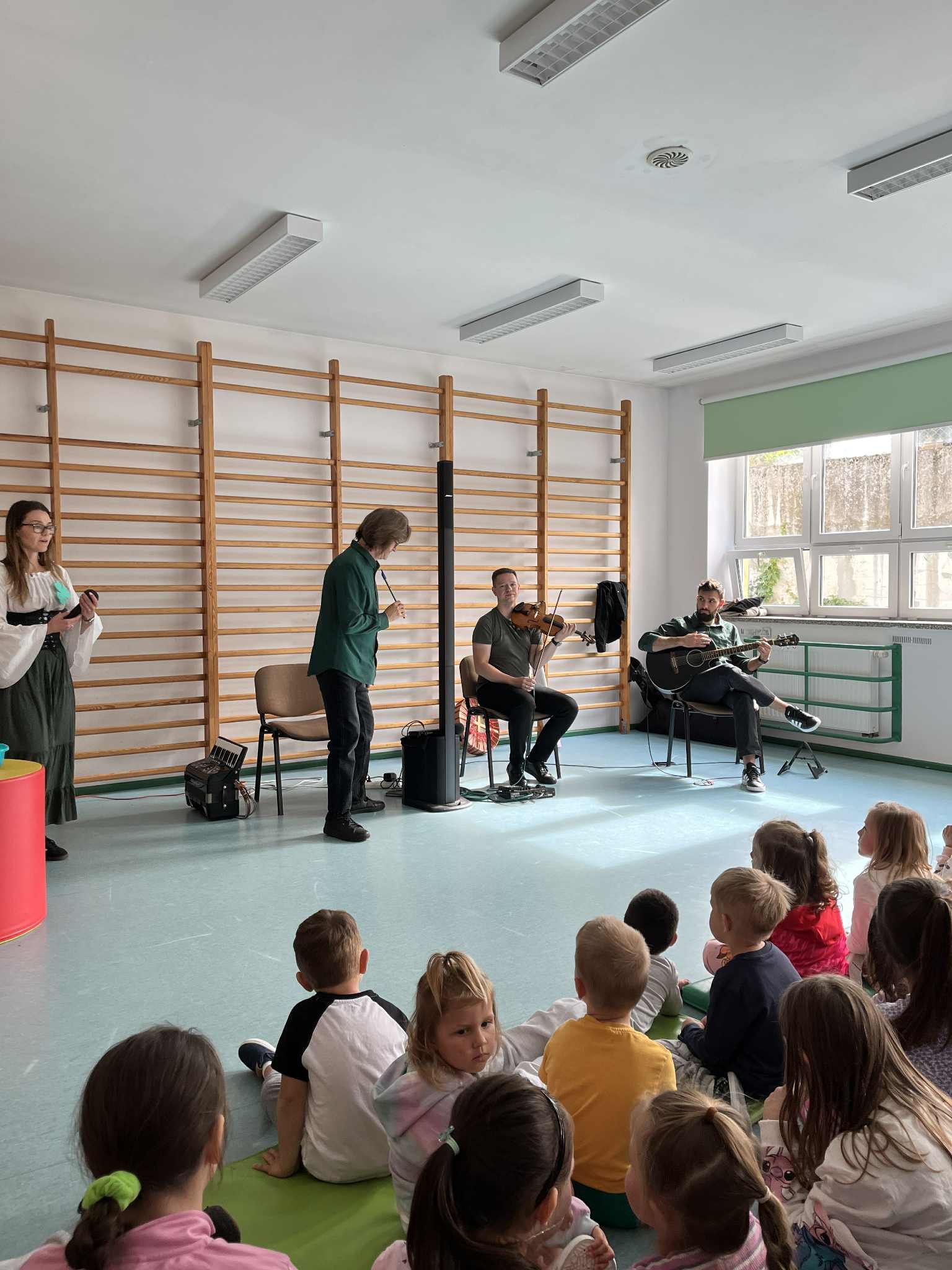 23 września w naszej szkole odbyła się audycja muzyczna pt „Na zielonej wyspie”. Razem z muzykami Arte-Muza odwiedziliśmy Zieloną Wyspę, czyli Irlandię. Była to doskonała okazja, żeby zapoznać się z muzyką irlandzką oraz niektórymi zwyczajami tam panującymi. Na wspólne poznawanie muzyki pełnej temperamentu zabrała dzieci Brenda – bardzo wesoła Irlandka, która niezbyt dobrze mówi po polsku.