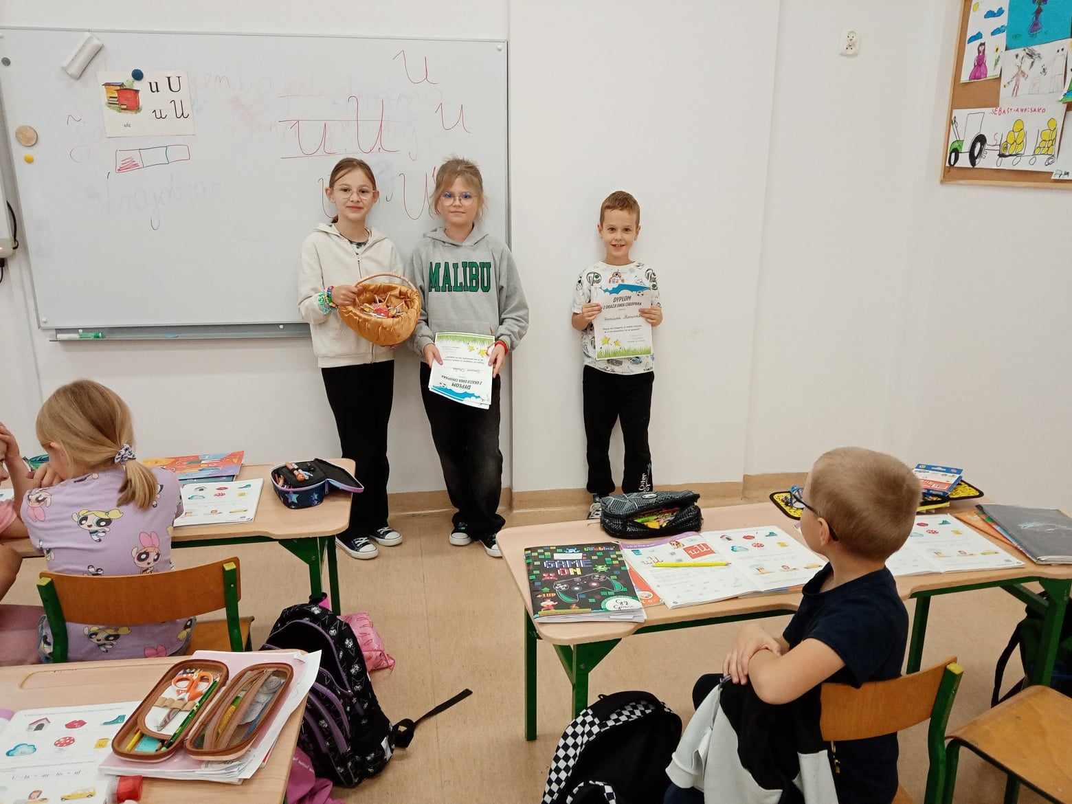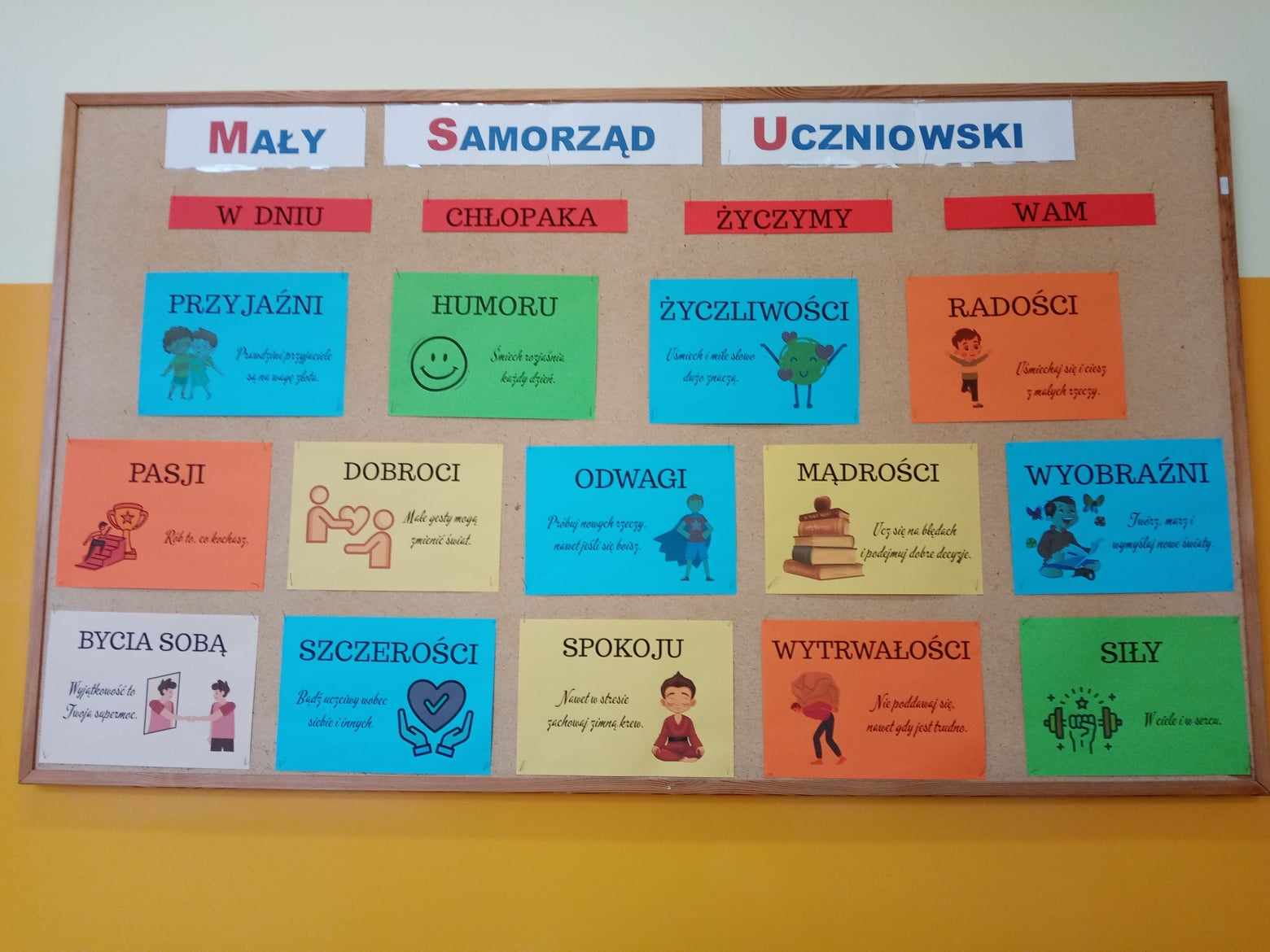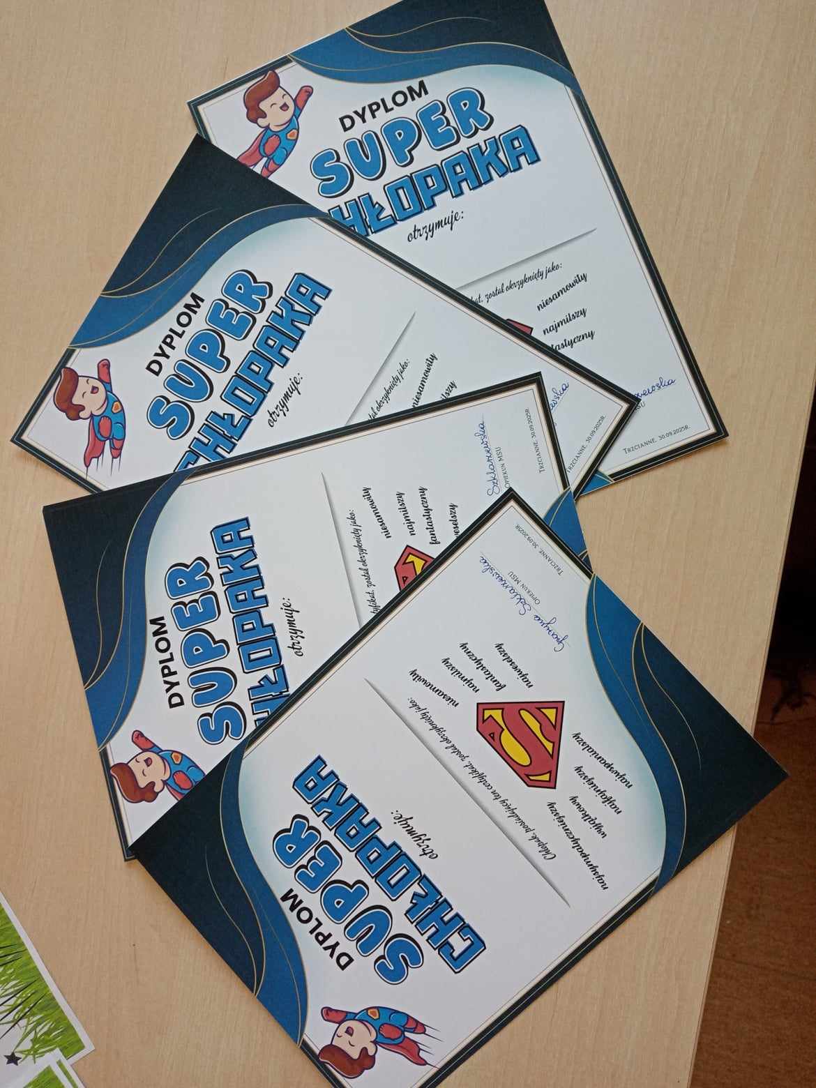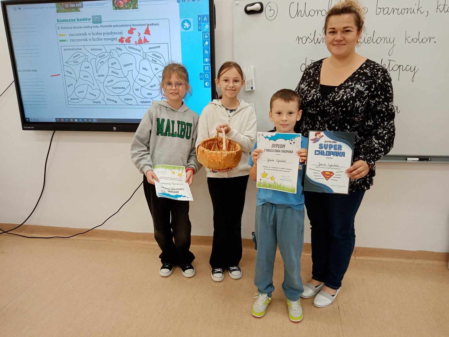 Dnia 30.09.2025 roku obchodzono w naszej szkole Dzień Chłopaka. To wyjątkowa okazja, by docenić wszystkich chłopców – tych małych i dużych, tych spokojnych i tych pełnych energii! Z tej okazji przygotowano wiele miłych niespodzianek i atrakcji, które wywołały uśmiech na niejednej twarzy! Każdy chłopiec otrzymał specjalny dyplom uznania – jako symbol sympatii, szacunku i wdzięczności za to, że po prostu są – wyjątkowi, zabawni i niepowtarzalni! W każdej klasie dziewczęta oddały głosy, wybierając Najsympatyczniejszego Chłopaka – kolegę, który swoją postawą, życzliwością i uśmiechem zdobył ich największe uznanie. To była świetna zabawa, a także okazja, by zauważyć tych, którzy często pomagają innym, są uprzejmi i zawsze można na nich liczyć! Zwycięzcy w każdej klasie otrzymali dyplom „Super Chłopaka” oraz słodki upominek, który był miłym podziękowaniem za ich serdeczność i pozytywną energię. Na korytarzu pojawiła się kolorowa gazetka poświęcona Dniu Chłopaka – z życzeniami i rysunkami. Dzięki zaangażowaniu rodziców, w klasach pojawiły się także upominki, które umiliły świętowanie. Wszystkim Chłopcom – dużym i małym – życzymy dużo radości, spełnienia marzeń, wspaniałych przygód i samych uśmiechniętych dni!
