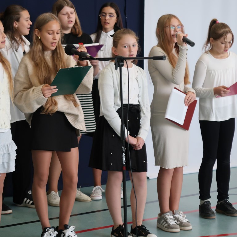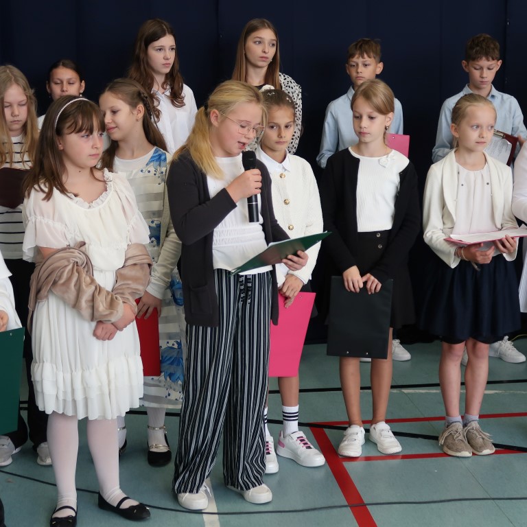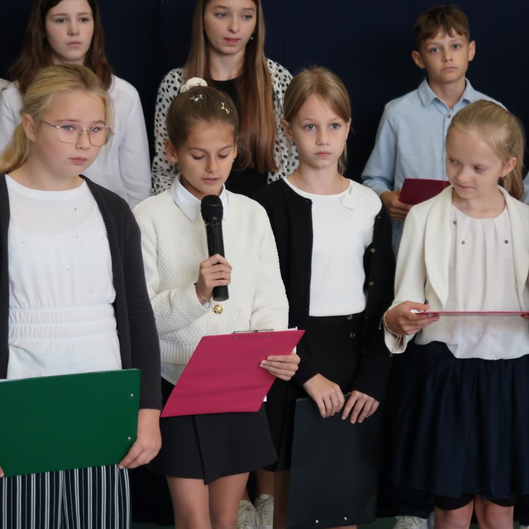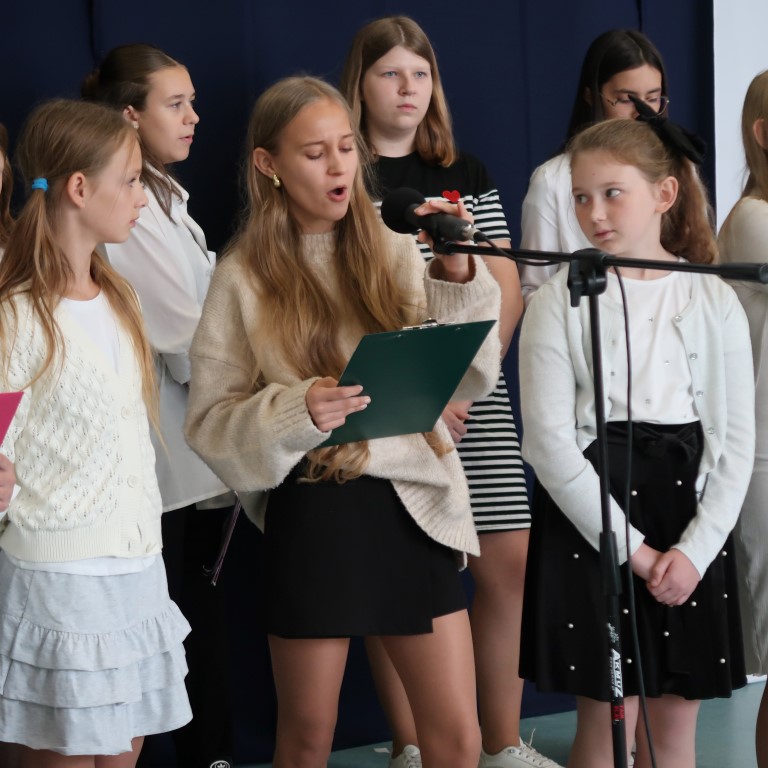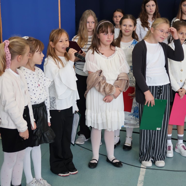 Część artystyczną, przygotowaną przez uczniów, wypełniły wiersze, piosenki i tańce, które wprowadziły wszystkich w radosny, uroczysty nastrój. Była to piękna okazja do wspólnego świętowania oraz podkreślenia, jak ważną rolę w życiu każdego człowieka odgrywa szkoła.