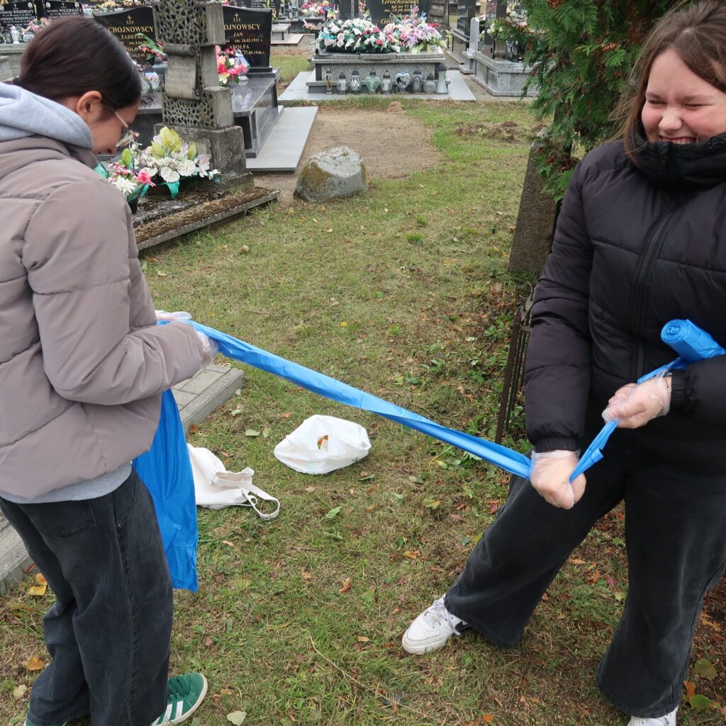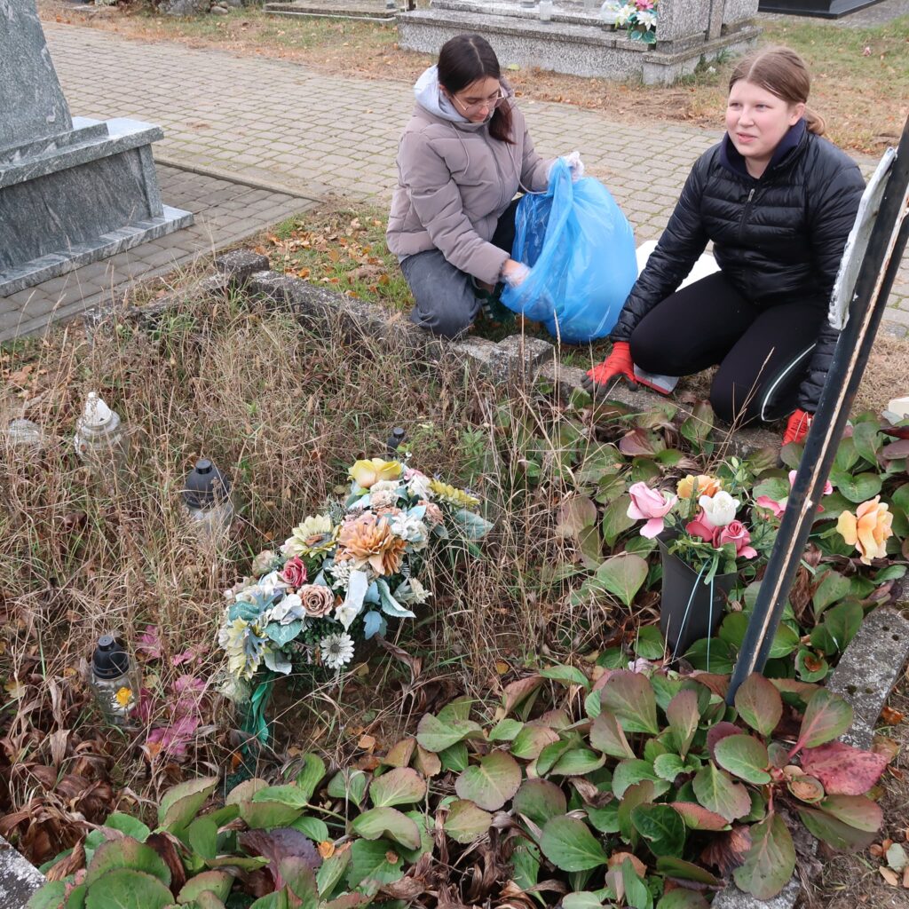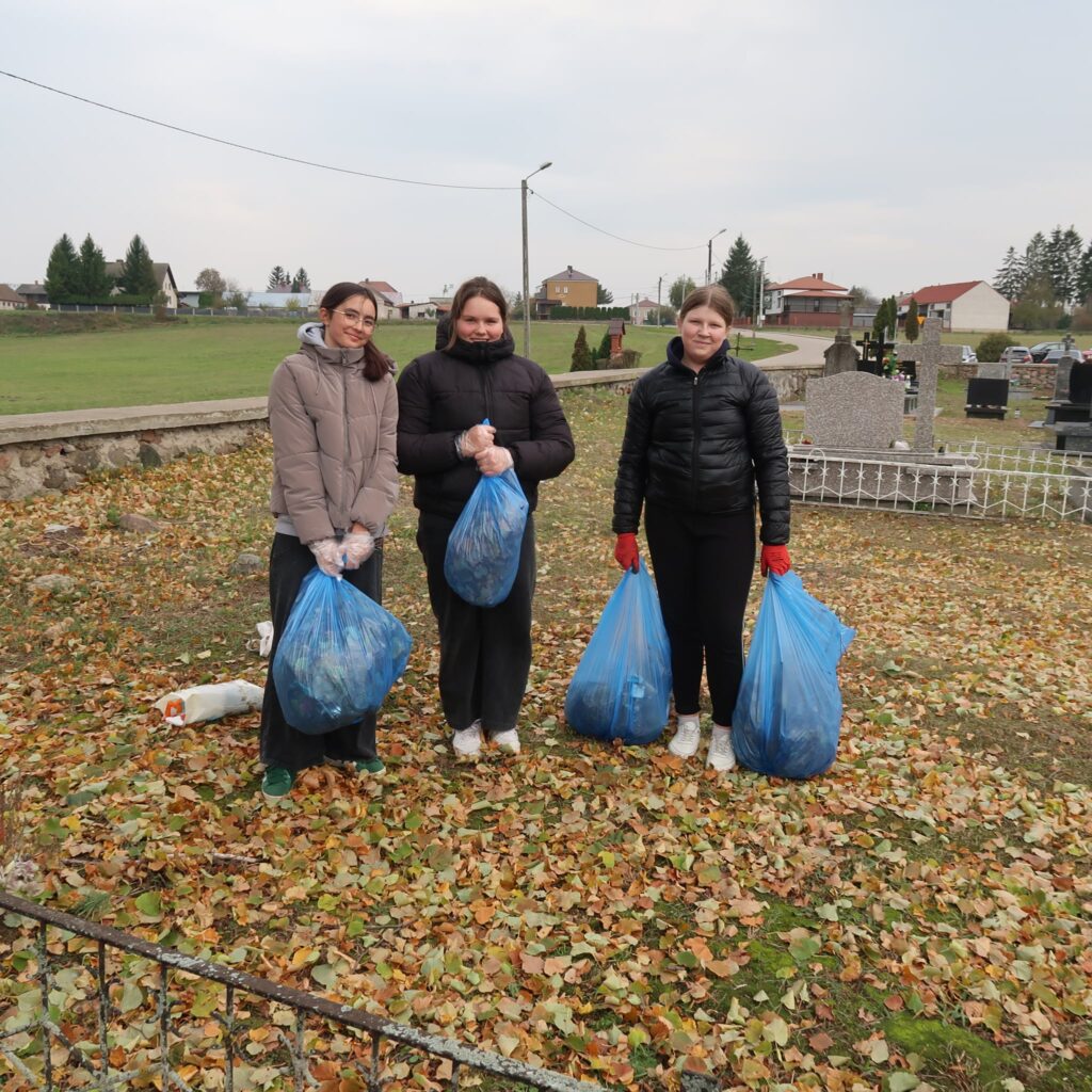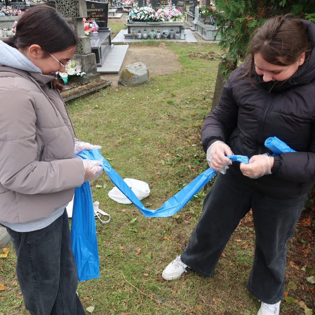 W dniu 22.10.2025r uczniowie kl. VII należący do szkolnego koła wolontariatu wzięli udział w akcji sprzątania cmentarza parafialnego w Trzciannem. Wolontariusze uprzątnęli kilkanaście grobów wyrzucając stare znicze, kwiaty itp.
