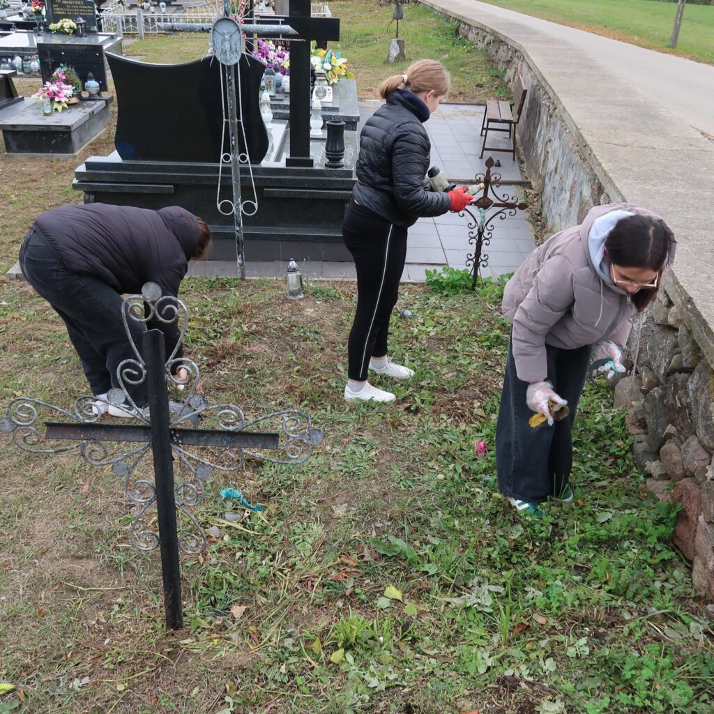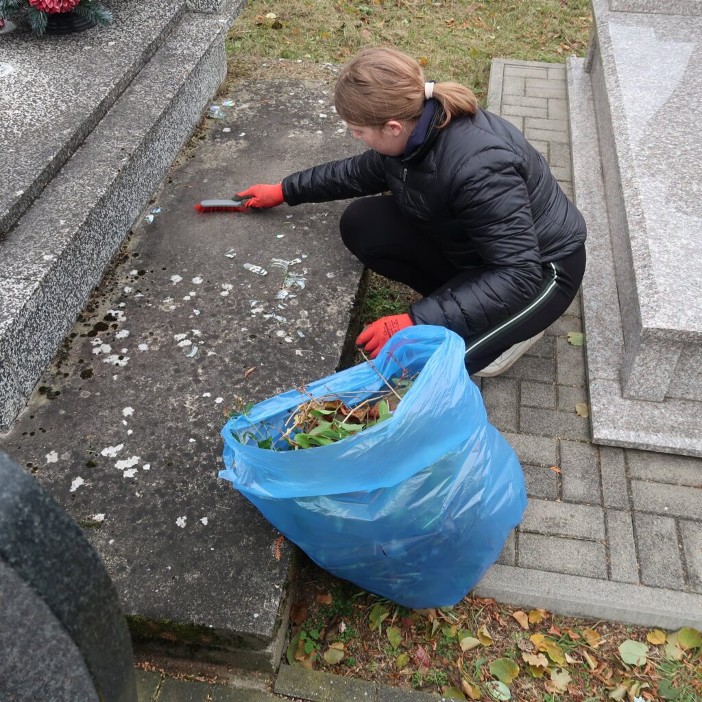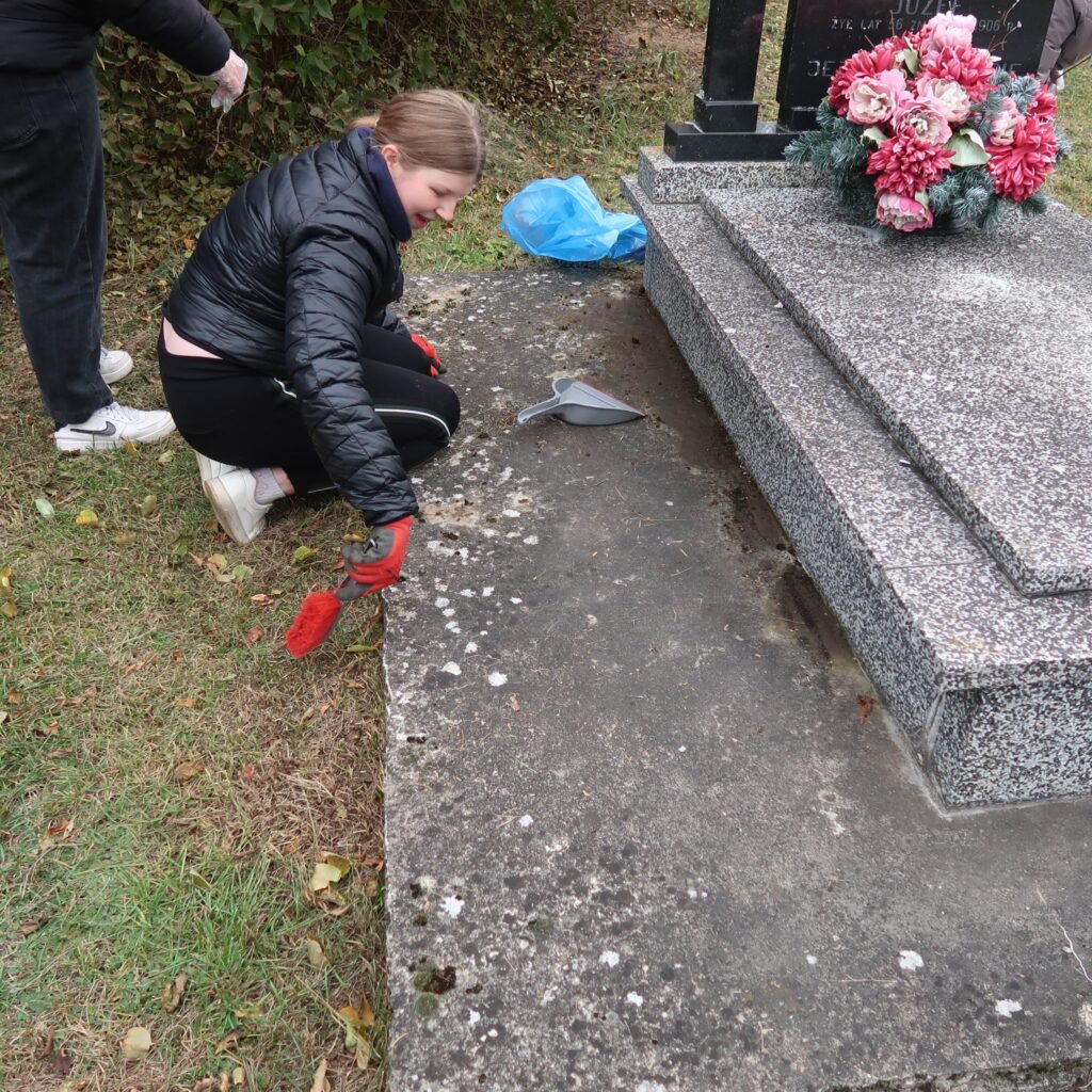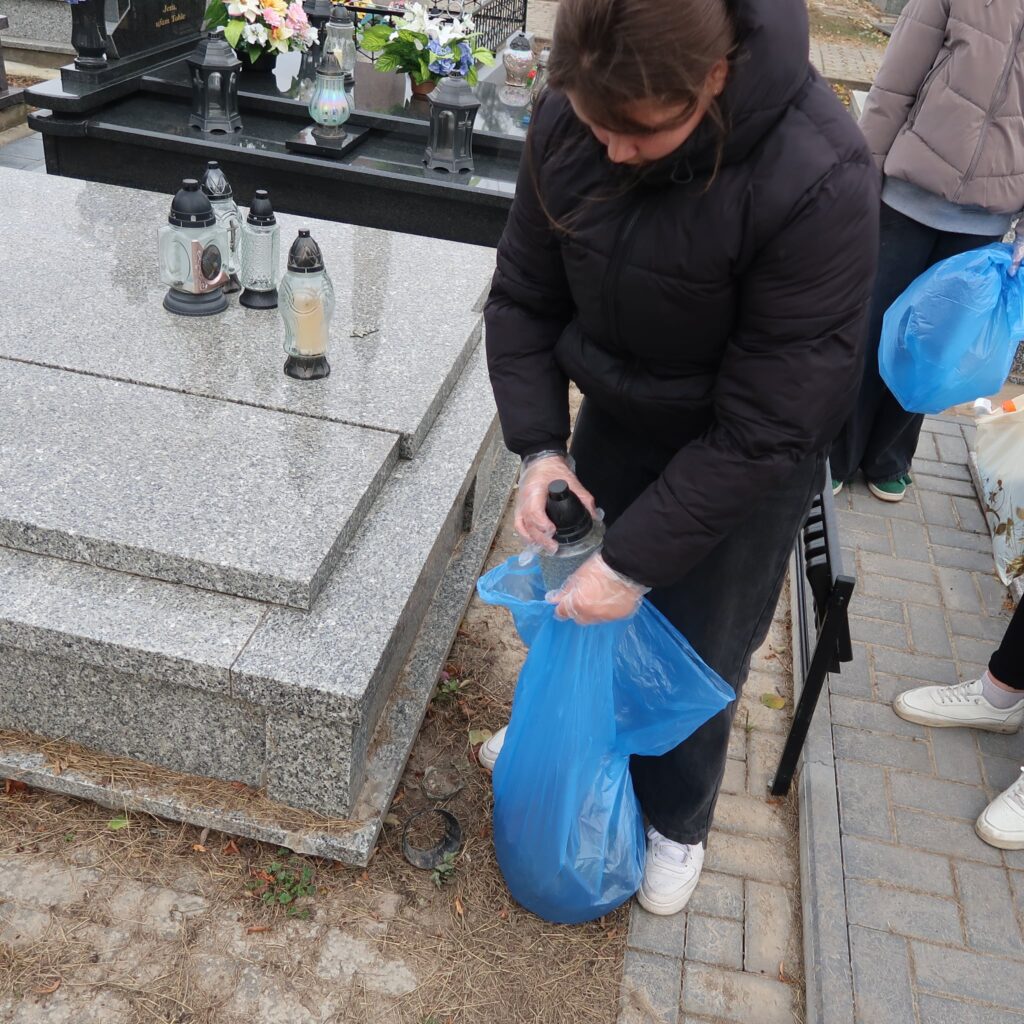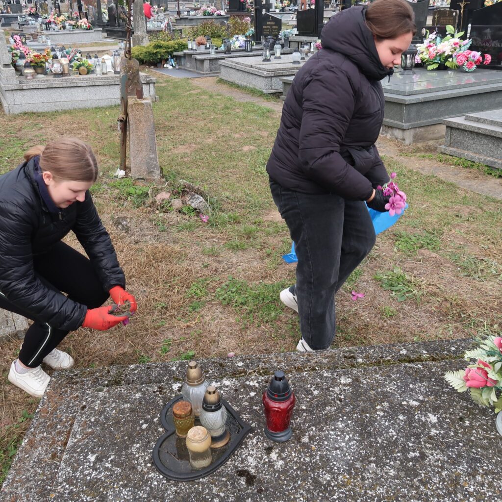 W dniu 22.10.2025r uczniowie kl. VII należący do szkolnego koła wolontariatu wzięli udział w akcji sprzątania cmentarza parafialnego w Trzciannem. Wolontariusze uprzątnęli kilkanaście grobów wyrzucając stare znicze, kwiaty itp.